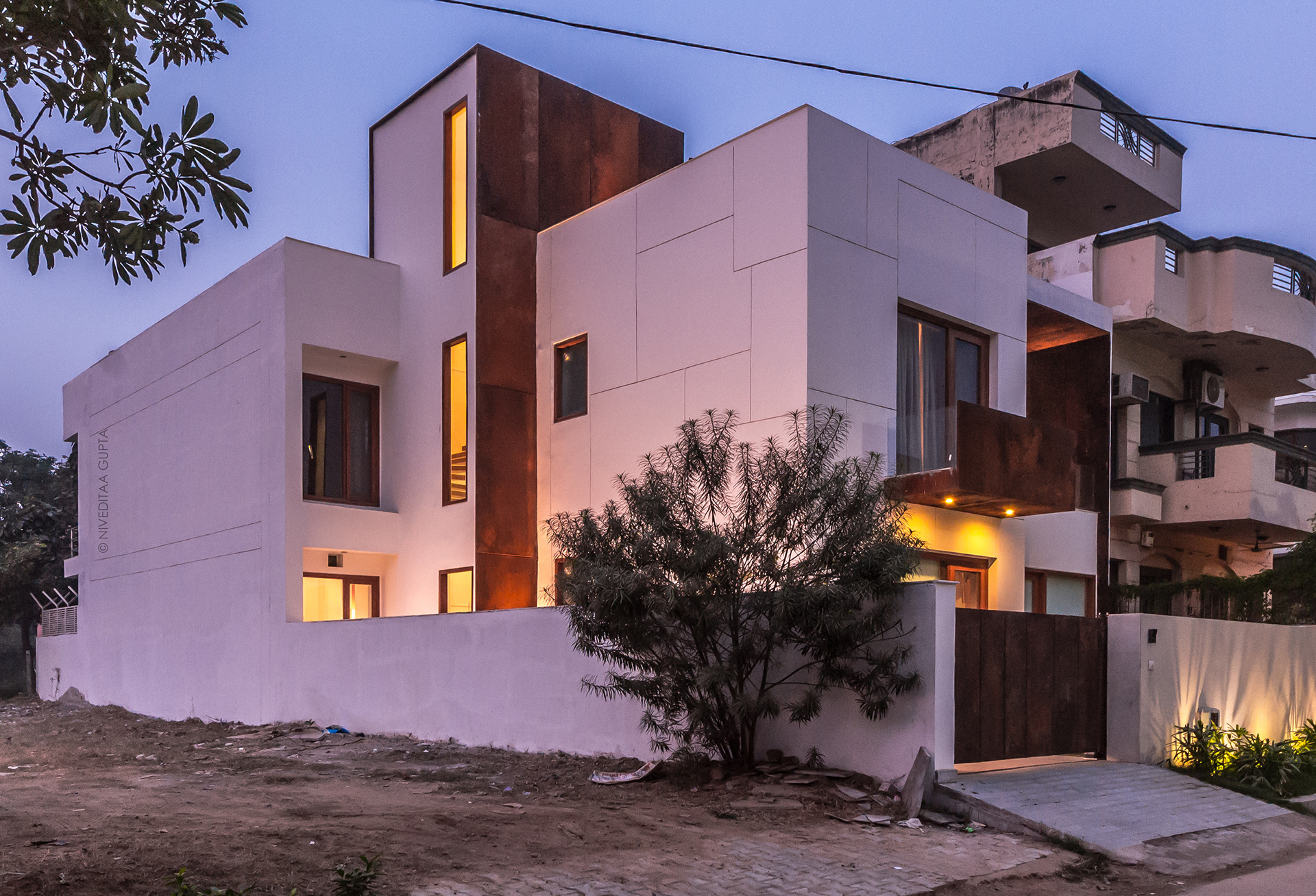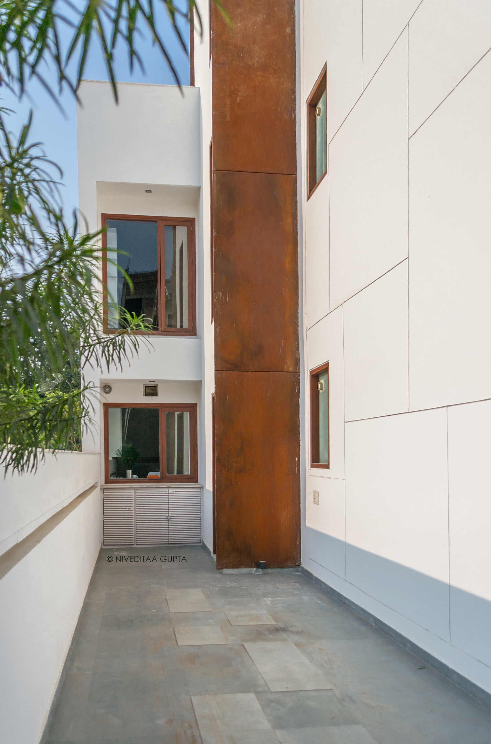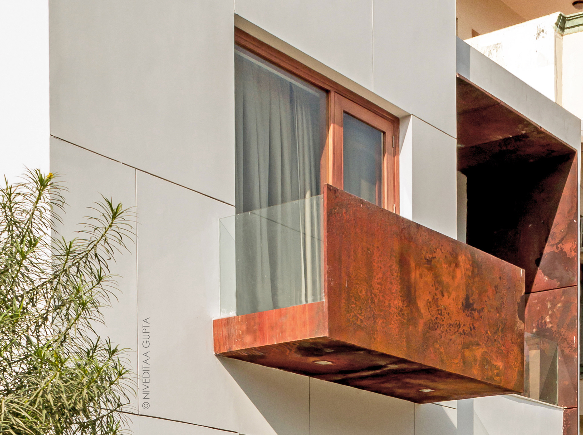 Primera, Narresh Kukereja's residence in the heart of Gurgaon, is a minimalist white abode contrasting with planes of stunning corten steel.