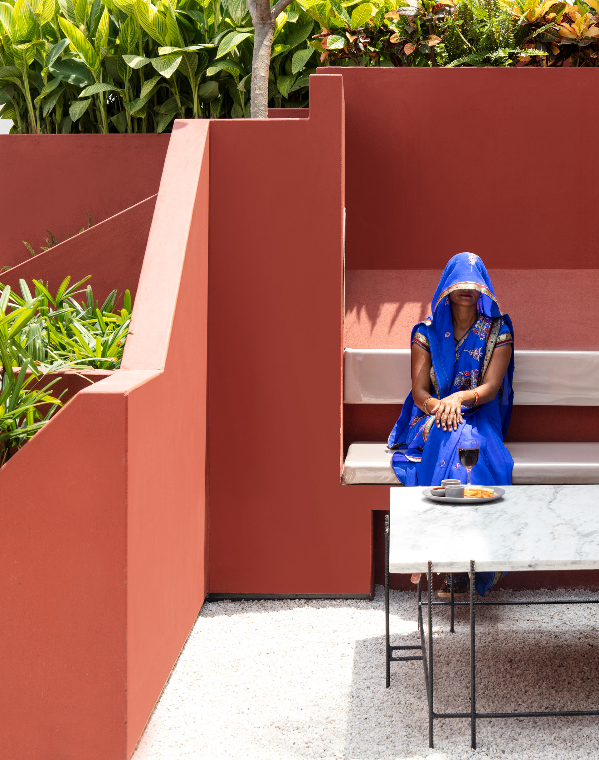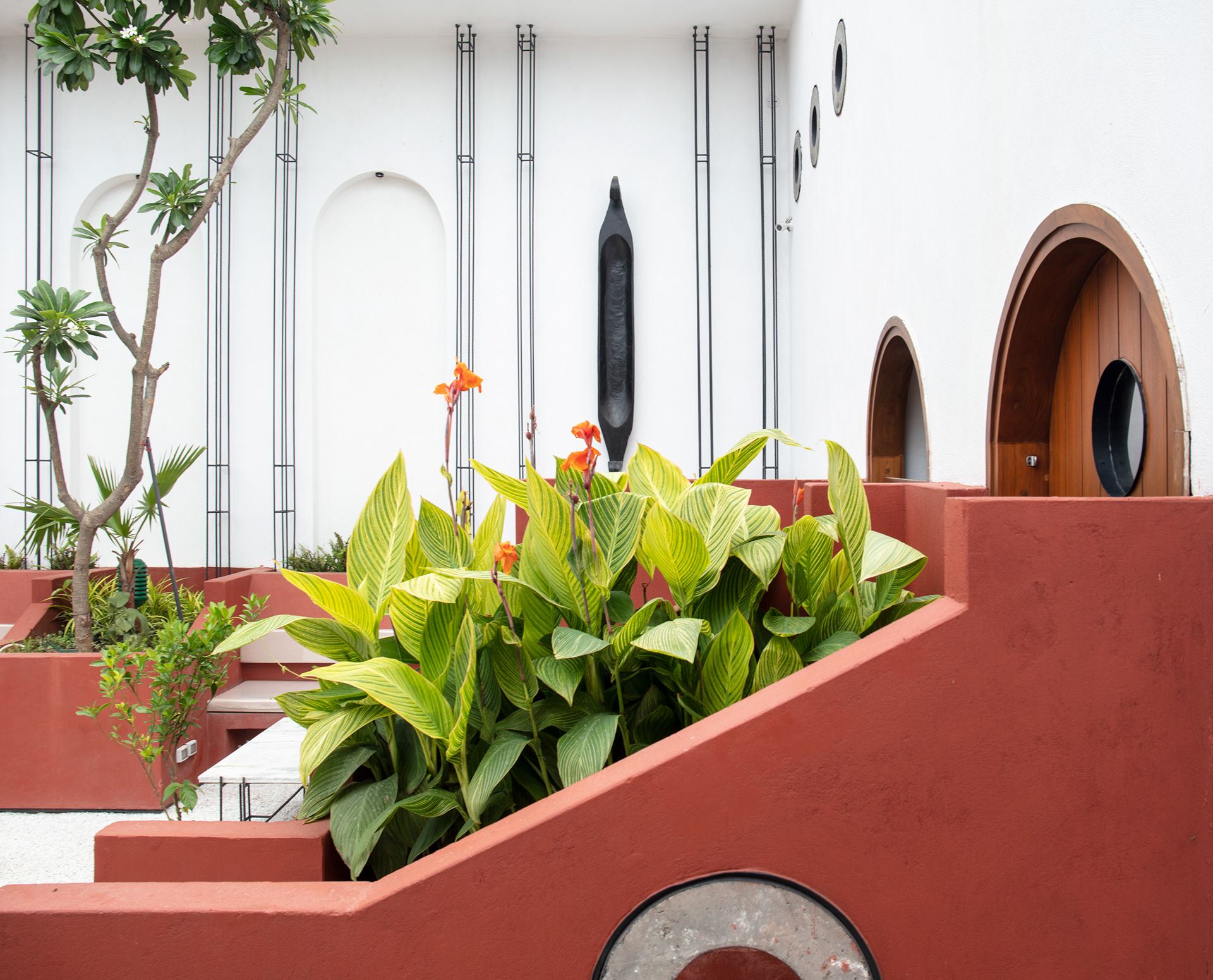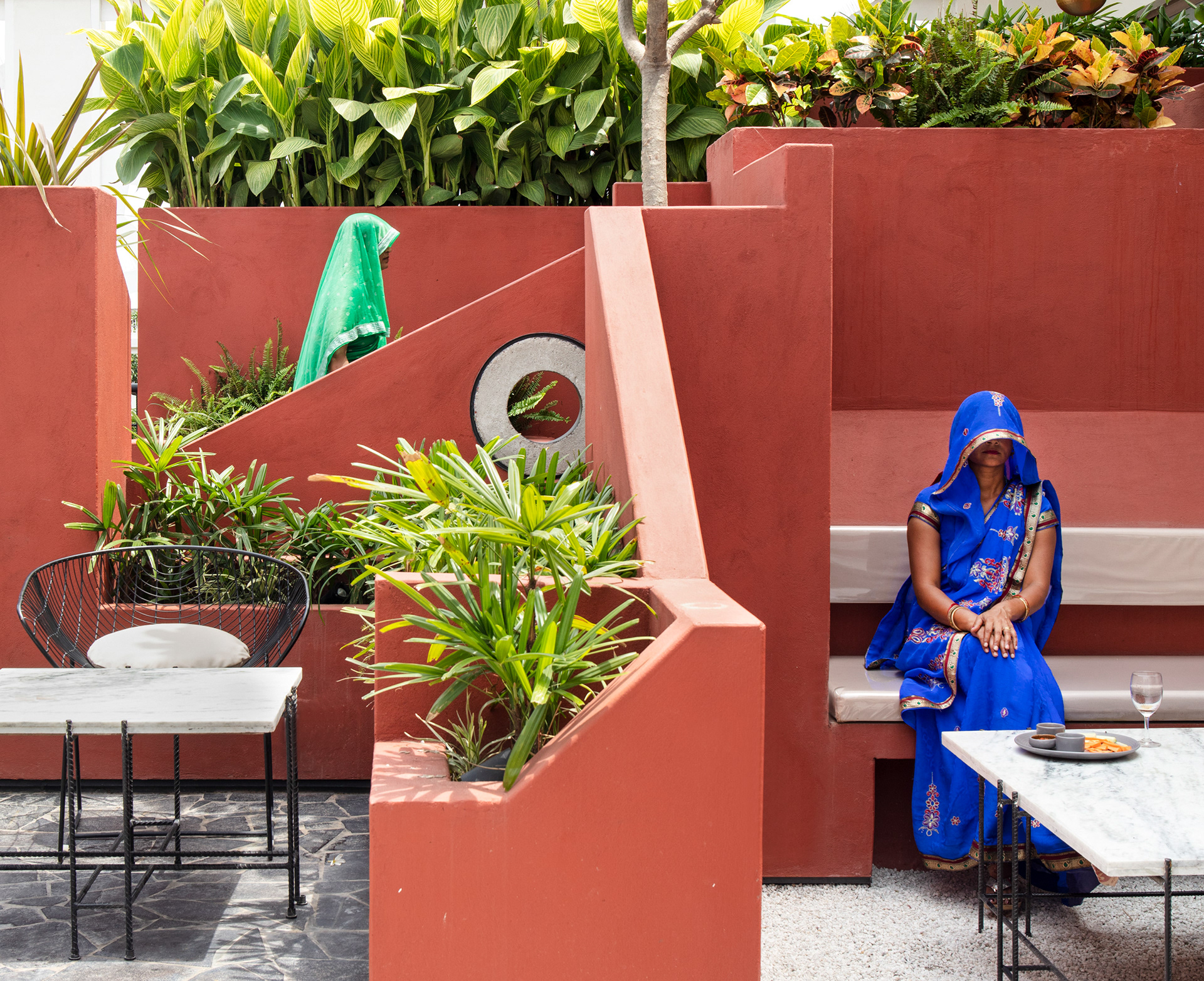 The form of the planters and walls have been carefully modulated to generate a surreal