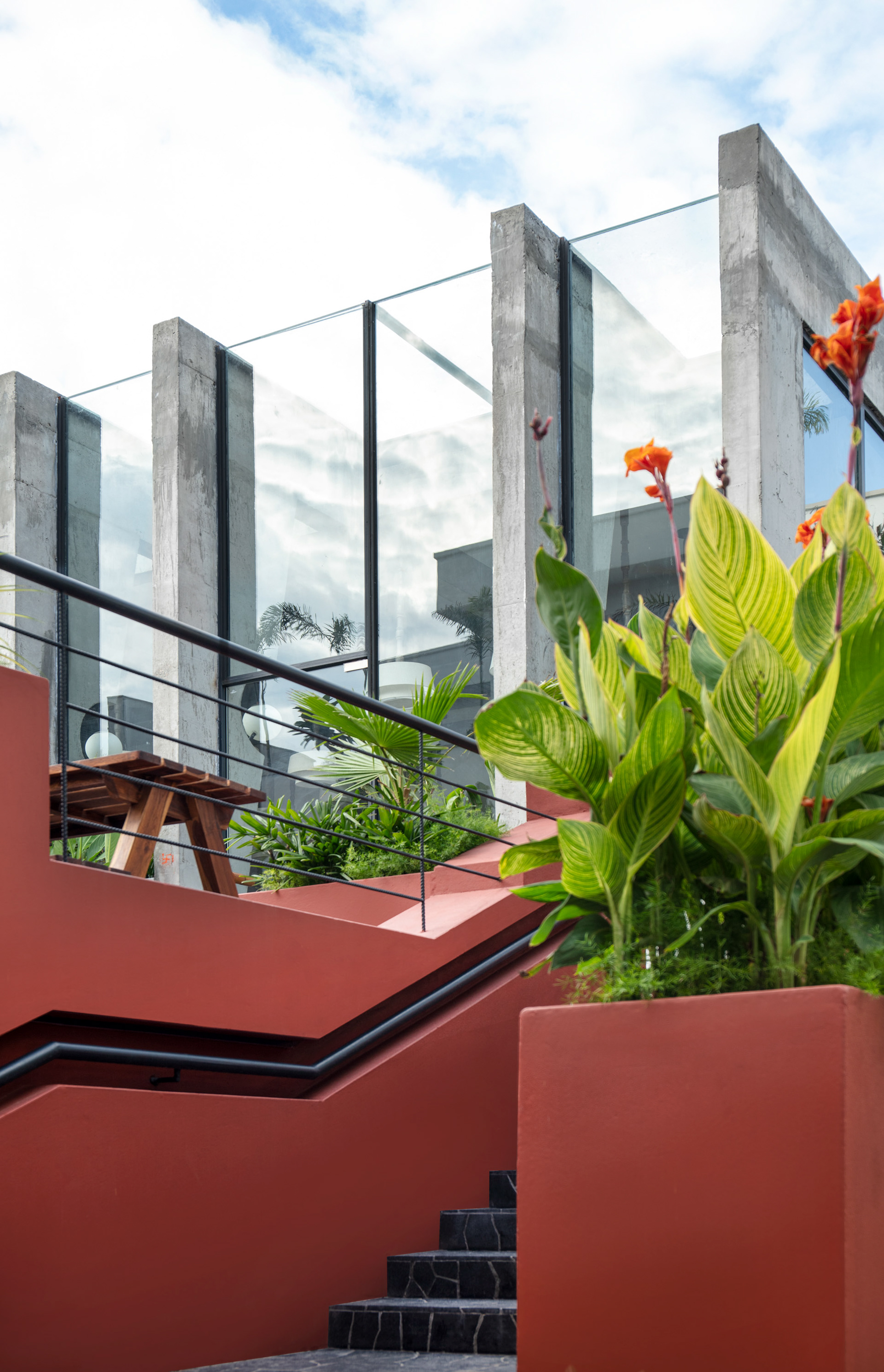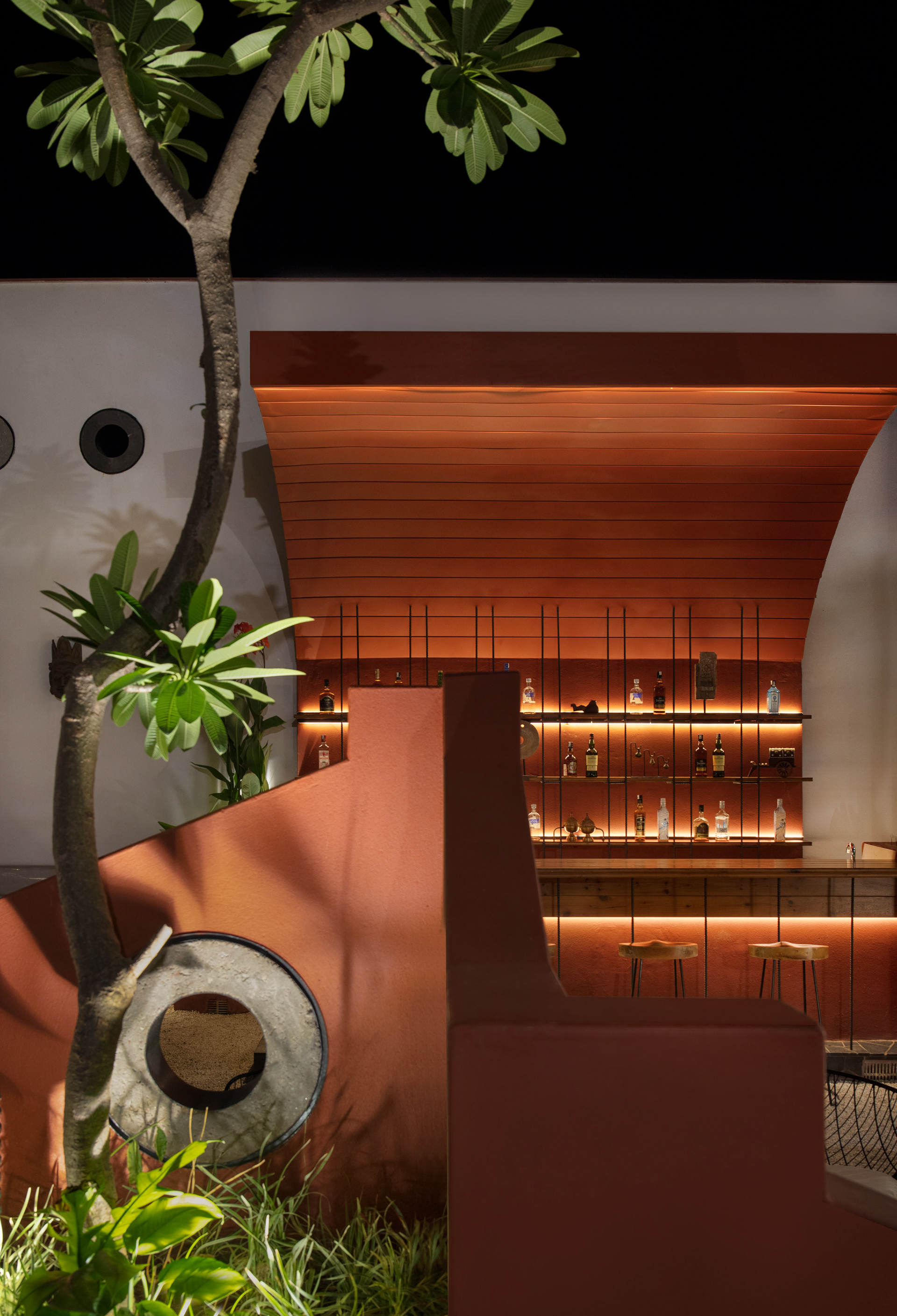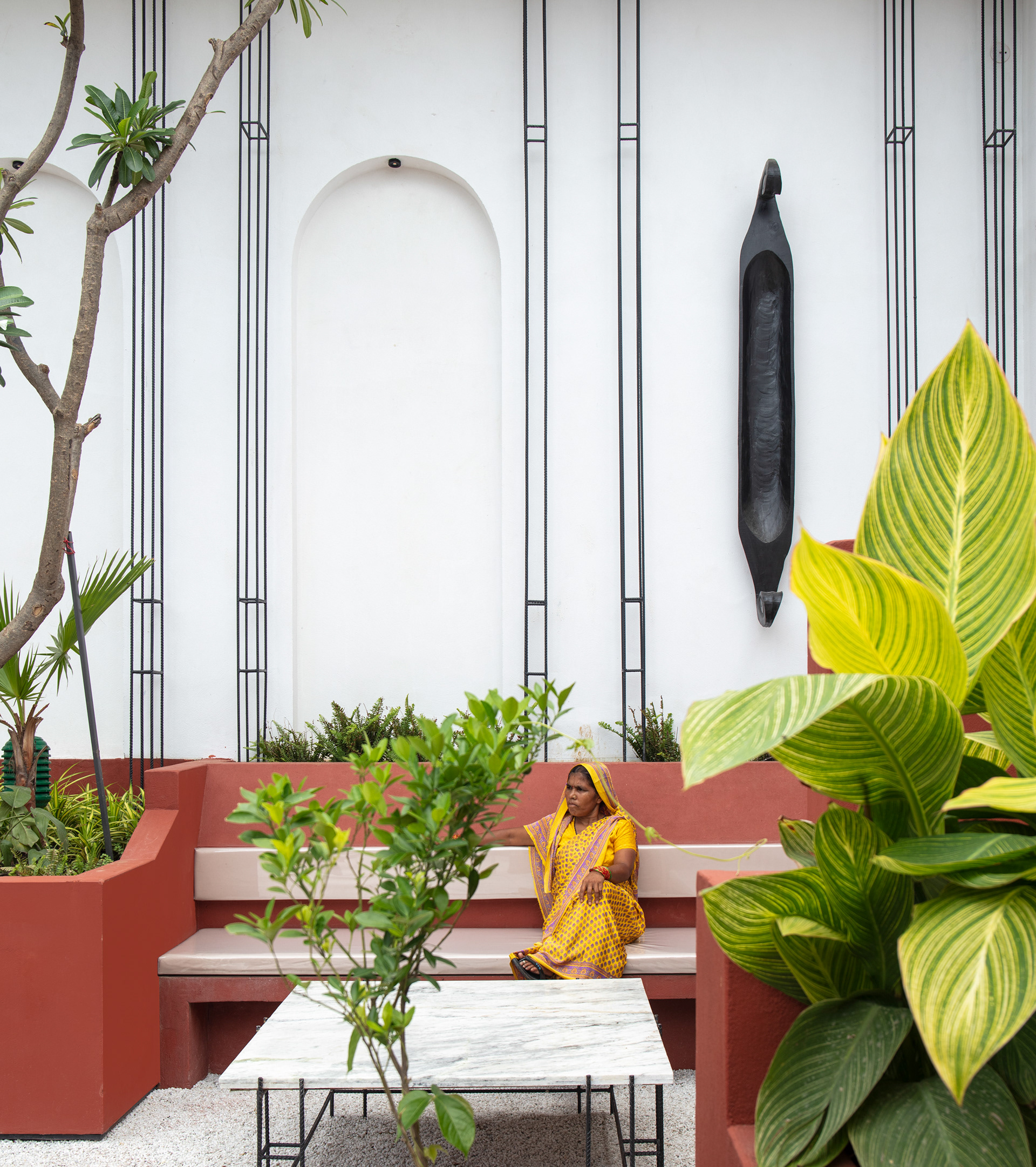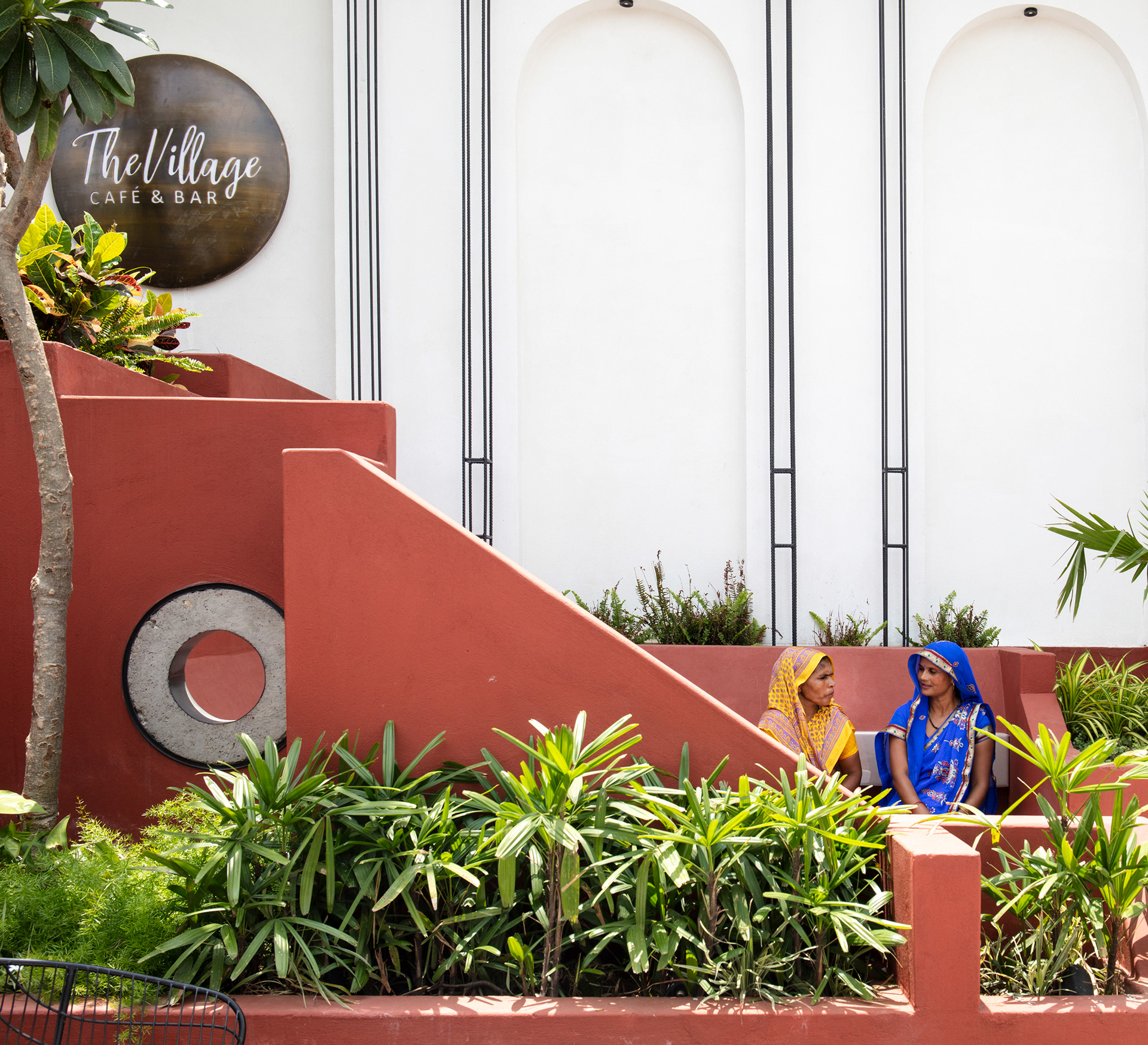 The form of the planters and walls have been carefully modulated to generate a surreal